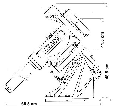 | Gewicht (Achskreuz ohne Gegengewichte) | 22.2 kg (RA-Achse = 11.4 kg, DE-Achse = 6.6 kg, Gegengewichtsstange 4.2 kg |