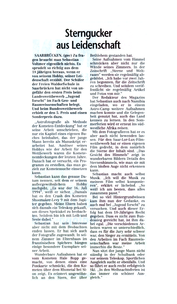 9. Juni 2000 aus der "Saarbrücker Zeitung"