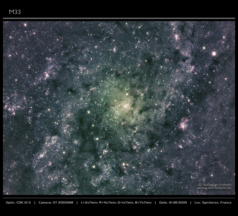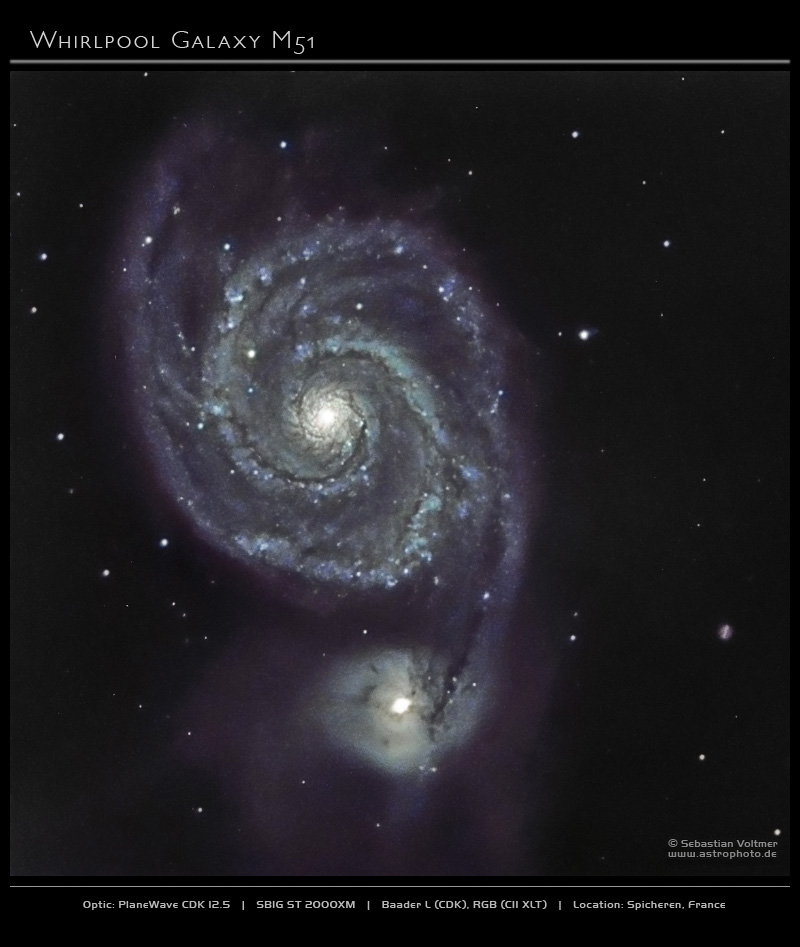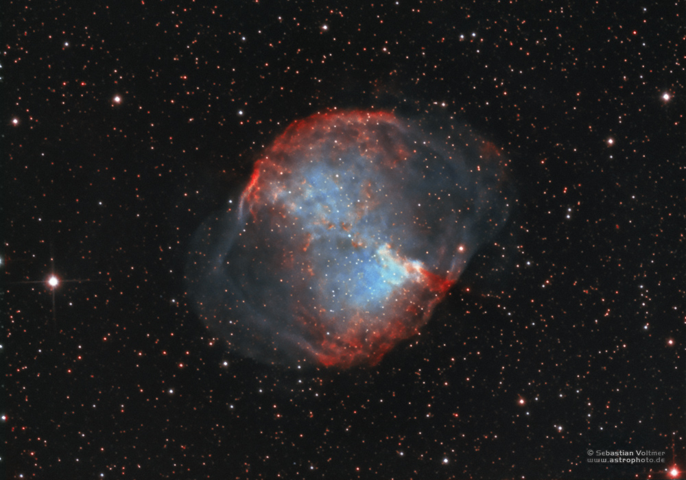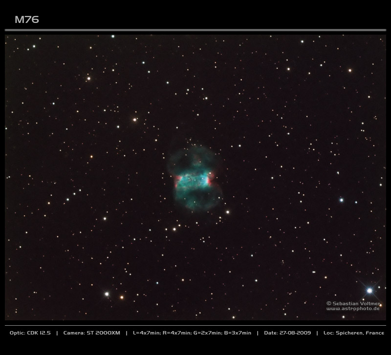 Alle Einzelbilder wurden am PlaneWave CDK 12,5" angefertigt. Die Gesamtbelichtungen der Farbauszüge: Ha 588min = 9,8 h B 176min = 2,9 h G 96min = 1,6 h R 88min = 1,46 h