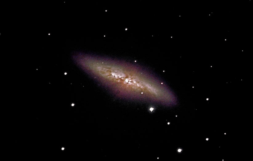 Optics / Telescope.....: C8 focal length, f/ratio..: 1230mm, f/6.3 Total exposure time....: 45 min. Film / CCD.............: Kodak Pro Gold 400 Guiding................: Baader Micro Guide Date & location........: 1997, Gornergrat Author.................: Sebastian Voltmer |