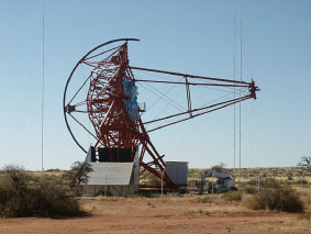 The H.E.S.S. telescopes are located in the Khomas Highland of Namibia, on the Farm Goellschau, about 100 km south-west of Windhoek. The exact location is 23°16'18'' S, 16°30'00'' E, at 1800 m asl. |