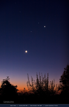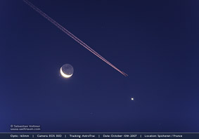 Mondsichel, Venus, Saturn und Regulus am Morgenhimmel |
