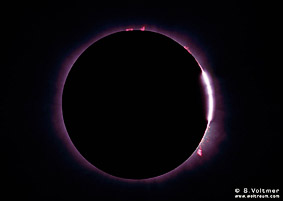 Besonders beeindruckend war die leuchtende Venusatmosphäre (Lomonossow-Bogen) im blauen Flügel der H-alpha-Linie bei 656nm!