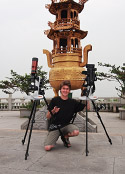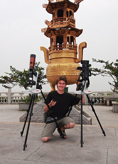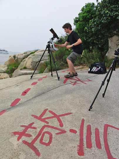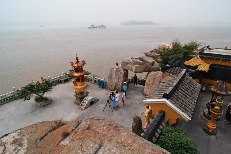 Buddhistische Klosteranlage auf der heiligen Insel Putuo. Zwei AstroTracs führen auf die Sonne nach.