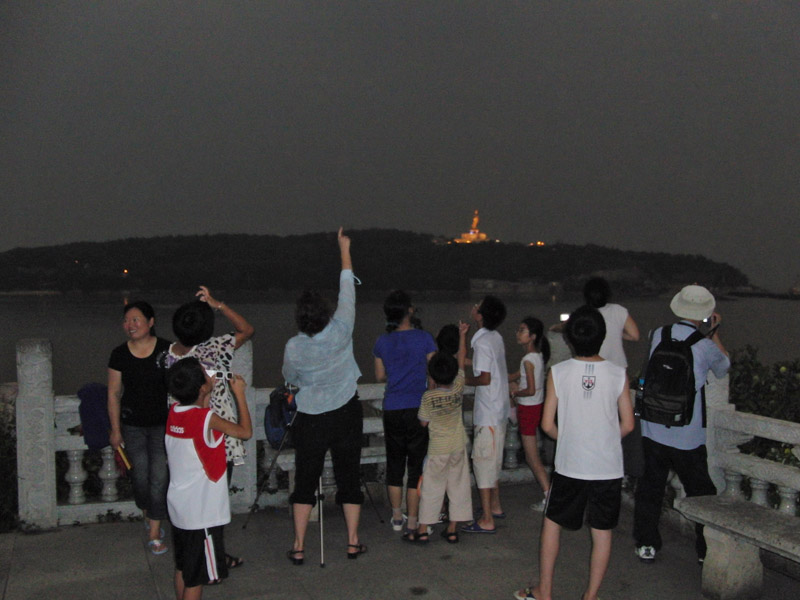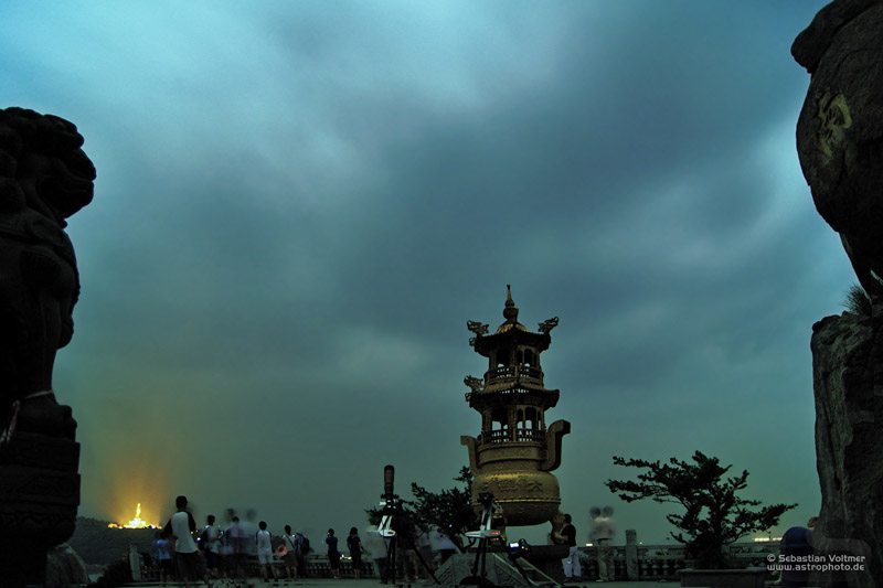 Paar Sekunden später: Es ist "Nacht". Im Hintergrund leuchtet die goldene "Guanyin" (buddhistische Statue) und lenkt von der düsteren Wolkendecke ab, die den Blick zur Korona verwehrt.