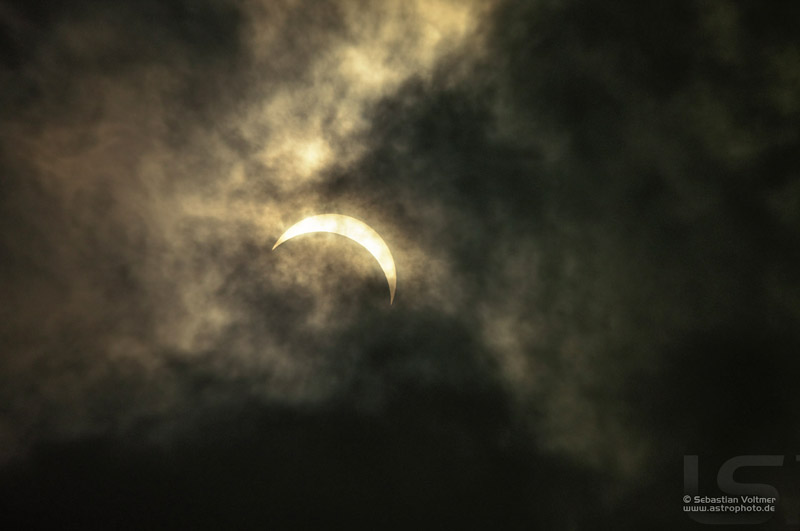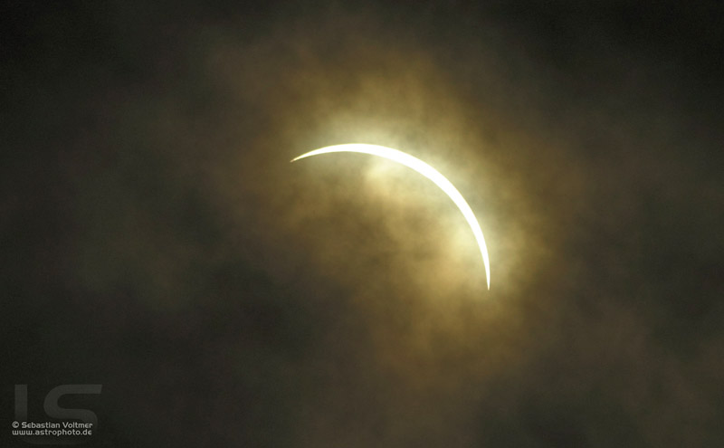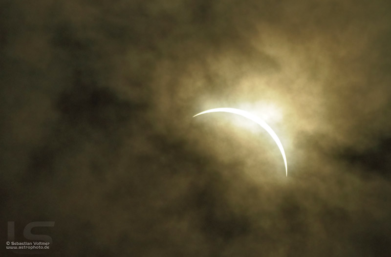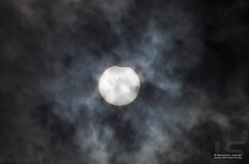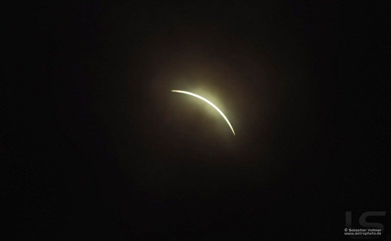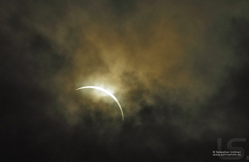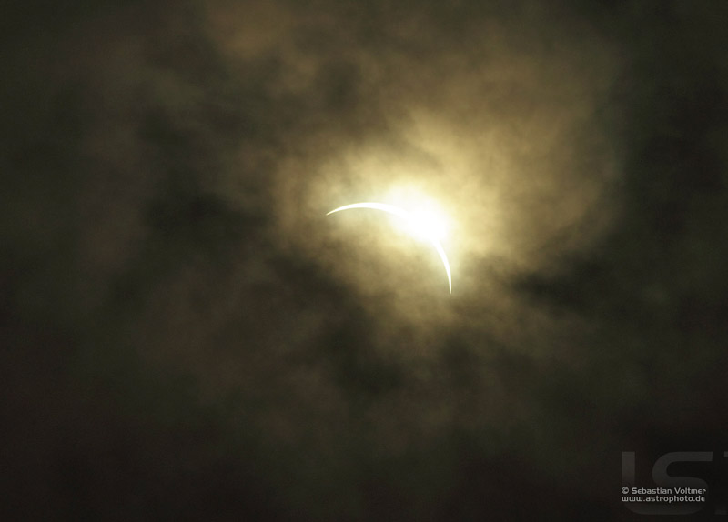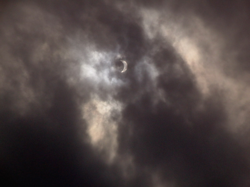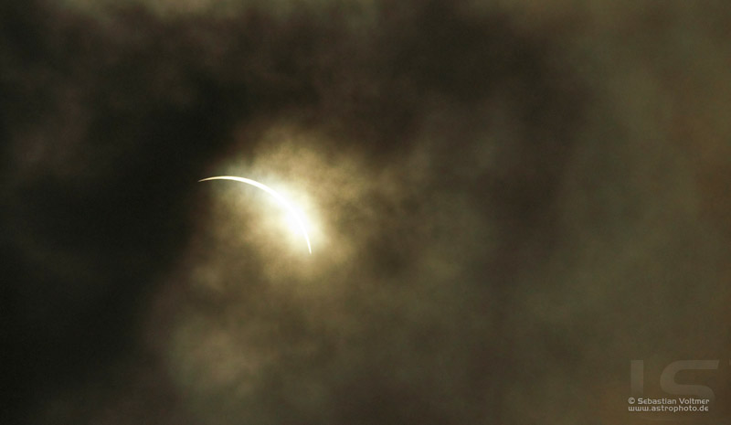 Zwischen den Wolkenfetzen erhaschen wir den letzten Teil der Finsternis.