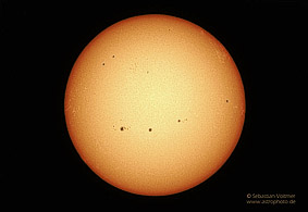 Sonnen-Spektrum Sonnenflecken am 27.10.03 ![]() Stärkster Sonnenausbruch in der Geschichte der Fotografie Sonnenfleckengruppe am 04.05.03 ![]() Sonnenflecken und Weißbänder am 14.06.2001 ![]() Sonnenuntergang über der Namib-Wüste ![]() Sonnenfinsternis 21.06.01 ![]() Sonnenfinsternis 21.06.01 ![]() Sonnenfinsternis 21.06.01 ![]() Sonne in Falschfarben |
