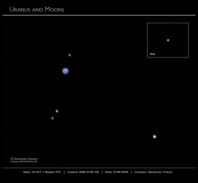 Uranus mit Monden aufgenommen am C14 der IAS.