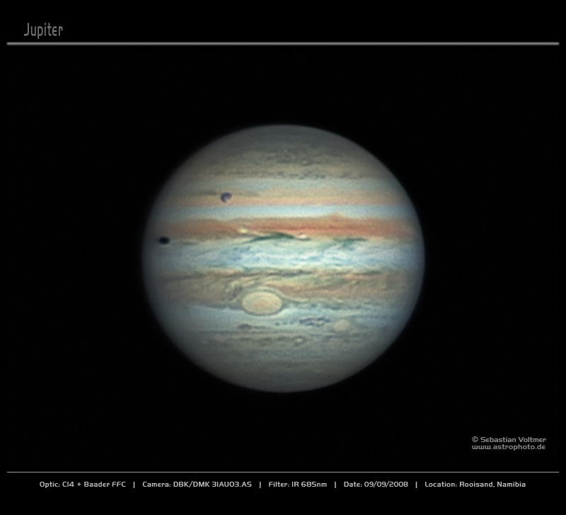 Optics / Telescope.....: C14 Amplification..........: Baader FFC Film / CCD.............: DBK/DMK 31AU03.AS Date & location........: 2003-09-09, Rooisand Observatory, Namibia Software...............: Giotto, RegiStax, Photoshop CS3 Author.................: Sebastian Voltmer |