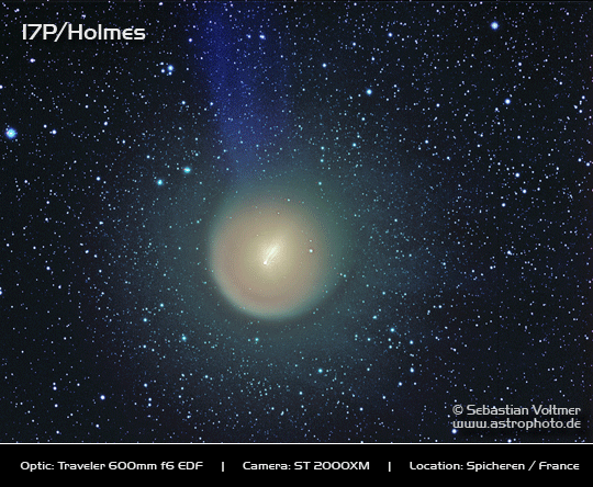 growing of comet Holmes in 10 days (November 2nd --> November 12th 2007), ST 2000XM, LRGB(UV) composite |