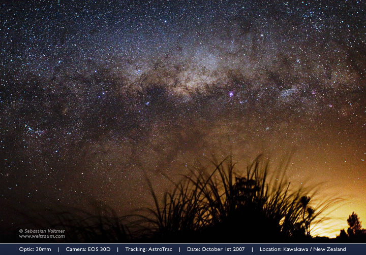 Milchstraßenzentrum über Kawakawa, New Zealand