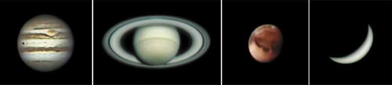Jupiter, Saturn, Mars und Venus. Diese vier Bilder sind am